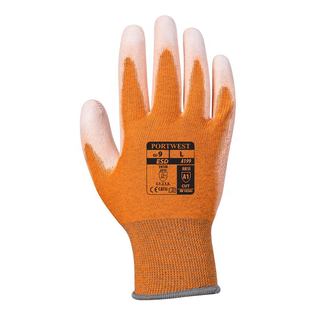 13γρ ύφασμα πυλώνα και άνθρακα που εκτρέπει στατικό ηλεκτρισμό. Επικαλυμμένο με μια ανθεκτική παλάμη PU για εξαιρετική επιδεξιότητα. Για χρήση σε ηλεκτρονική συναρμολόγηση δοκιμές και εργασίες ακριβείας.