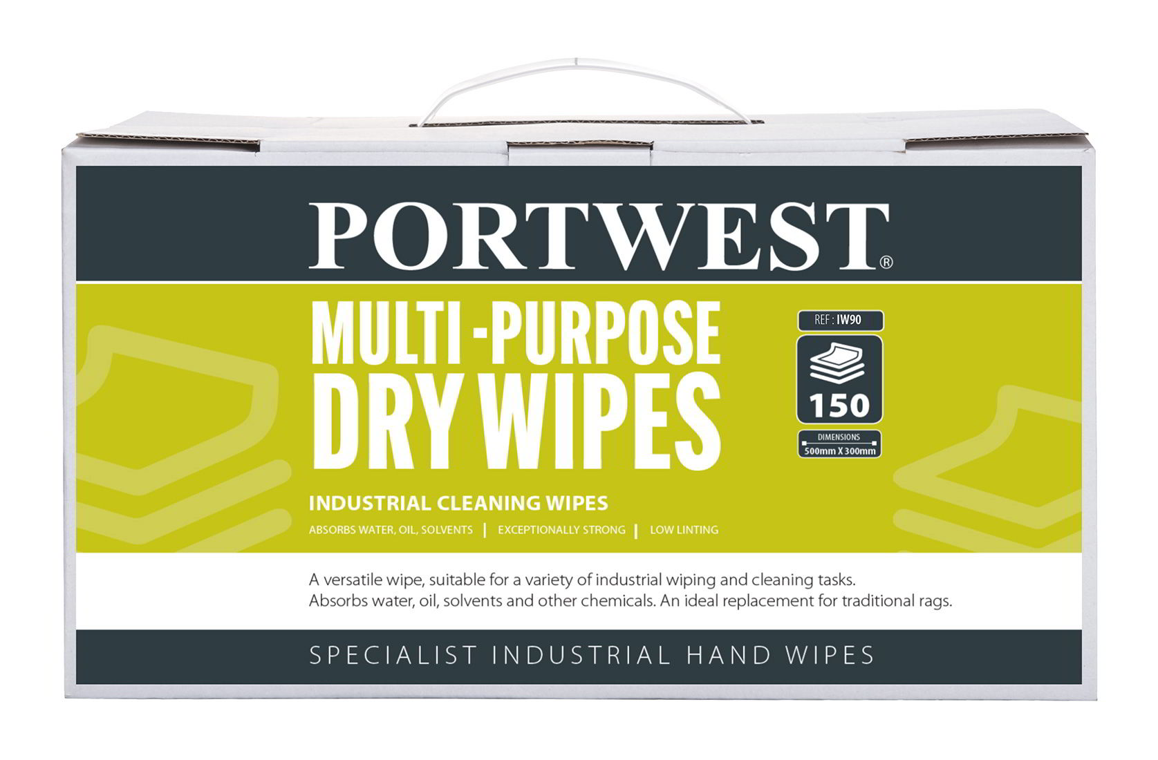 Ευέλικτα μαντηλάκια κατάλληλα για ποικίλες βιομηχανικές εργασίες σκουπίσματος και καθαρισμού. Απορροφά νερό λάδια διαλύτες και άλλα χημικά. Ιδανική αντικατάσταση παραδοσιακών κουρελιών. Παρέχεται σε ένα εύχρηστο φορητό κουτί διανομέα.