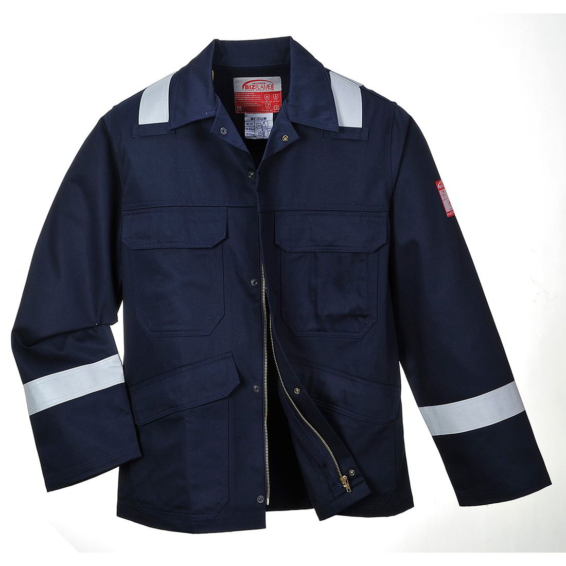 Αυτό το Σακάκι είναι κατασκευασμένο με υψηλής ορατότητας ανακλαστική ταινία διπλής ραφής για βελτιωμένη ορατότητα. Τα χαρακτηριστικά γνωρίσματα περιλαμβάνουν τριπλά ραμμένες ραφές υψηλής προβολής ταινίες στους ώμους και τα χέρια κρυφό φερμουάρ μπροστά από ορείχαλκο δύο μπροστινές τσέπες στο στήθος με καπάκι και κλείσιμο τρούκ. Ρυθμιζόμενο άνοιγμα στο μανίκι.