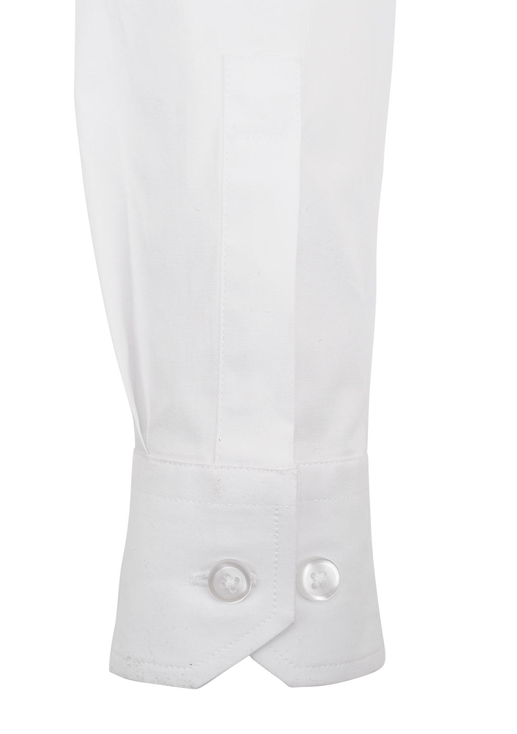 Περιγραφή: 135 g / m², 97% βαμβάκι, 3% ελαστάν, Μαλακός θηλυκός γιακάς, κουμπιά με εφέ μαργαριταριών, Οριζόντια τελευταία κουμπότρυπα, Ρυθμιζόμενες μανσέτες 2 κουμπιών με επιπλέον μανικετόκουμπα, τετράγωνες μανσέτες, Μοντέρνο στρογγυλό κάτω στρίφωμα, 1 κουμπί ανταλλακτικό, λείο ύφασμα ποπλίνα