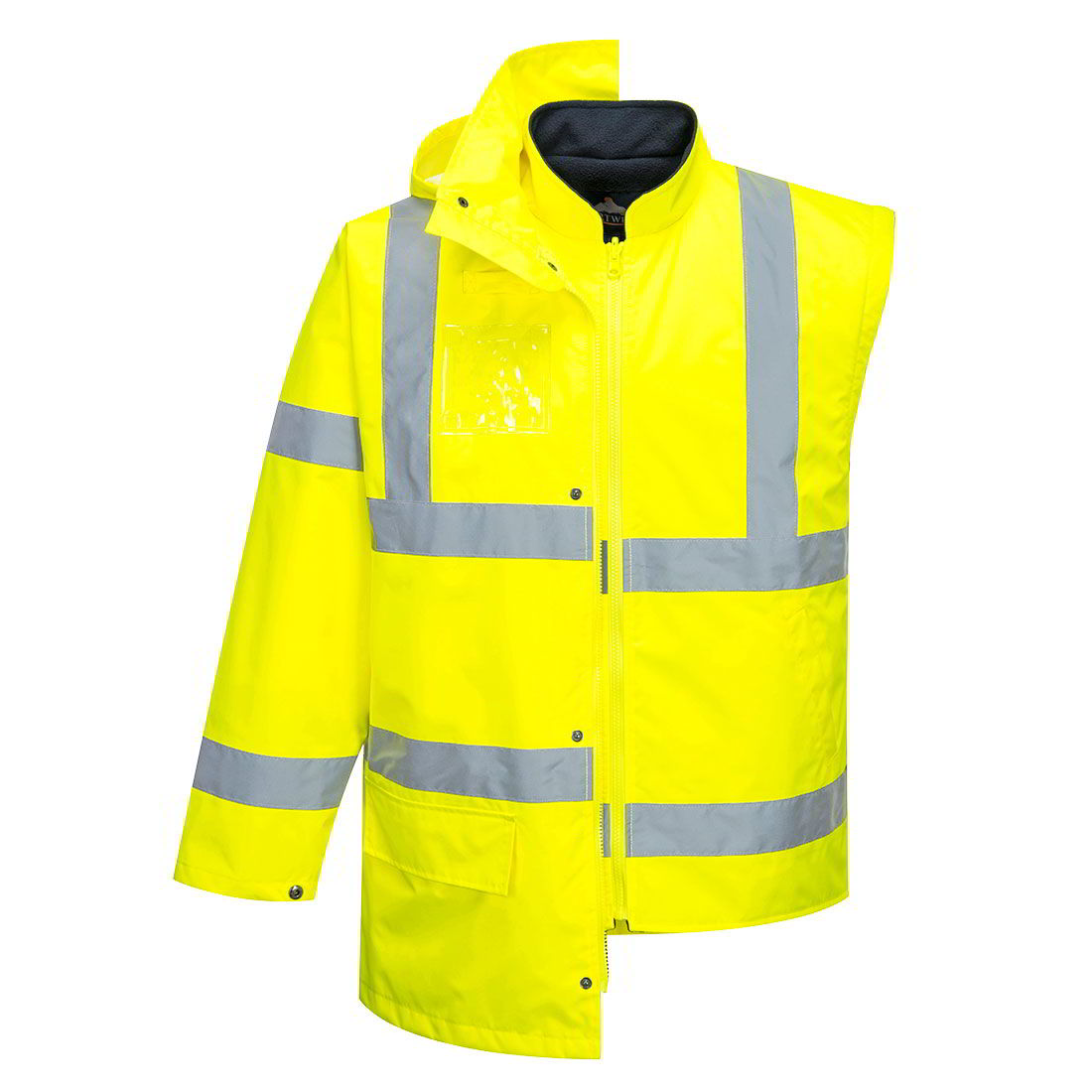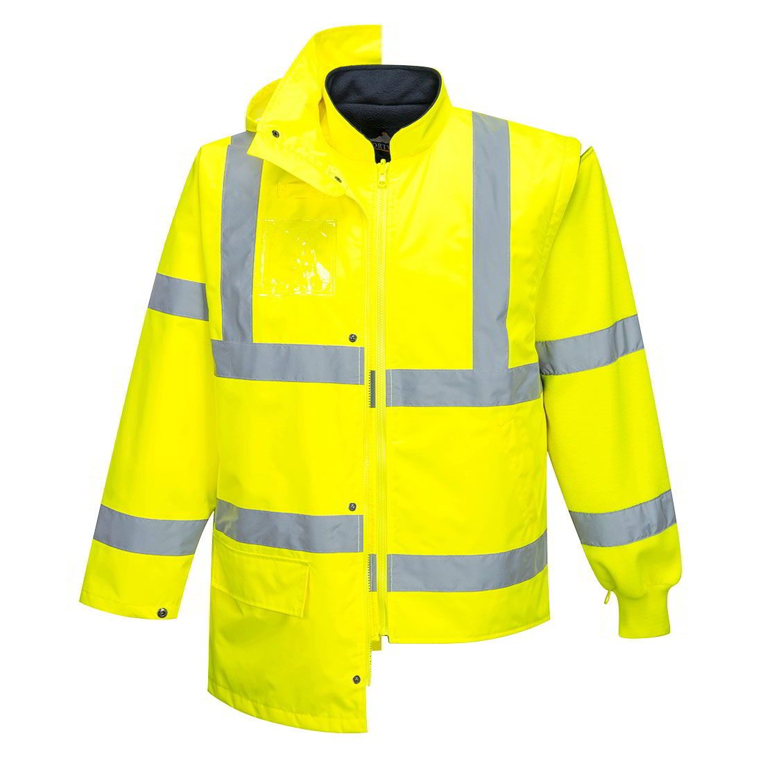 Αυτό το υπέροχο σύστημα σακάκι 5 σε 1 είναι προσαρμόσιμο για οποιαδήποτε κατάσταση εργασίας. Το εξωτερικό σακάκι διαθέτει 2 μεγάλες ευρύχωρες τσέπες ρυθμιζόμενες μανσέτες και κρυμμένη προσαρμοσμένη κουκούλα. Το εσωτερικό σακάκι έχει μανίκια από φθορίζοντα φλις άνετα πλεκτά μανίκια και 2 πλαϊνές τσέπες. Τόσο το εσωτερικό όσο και το εξωτερικό περίβλημα έχουν πλήρη πιστοποίηση EN ISO 20471 Κλάσης 3 για μέγιστη προστασία και ασφάλεια με μεγάλη ορατότητα.