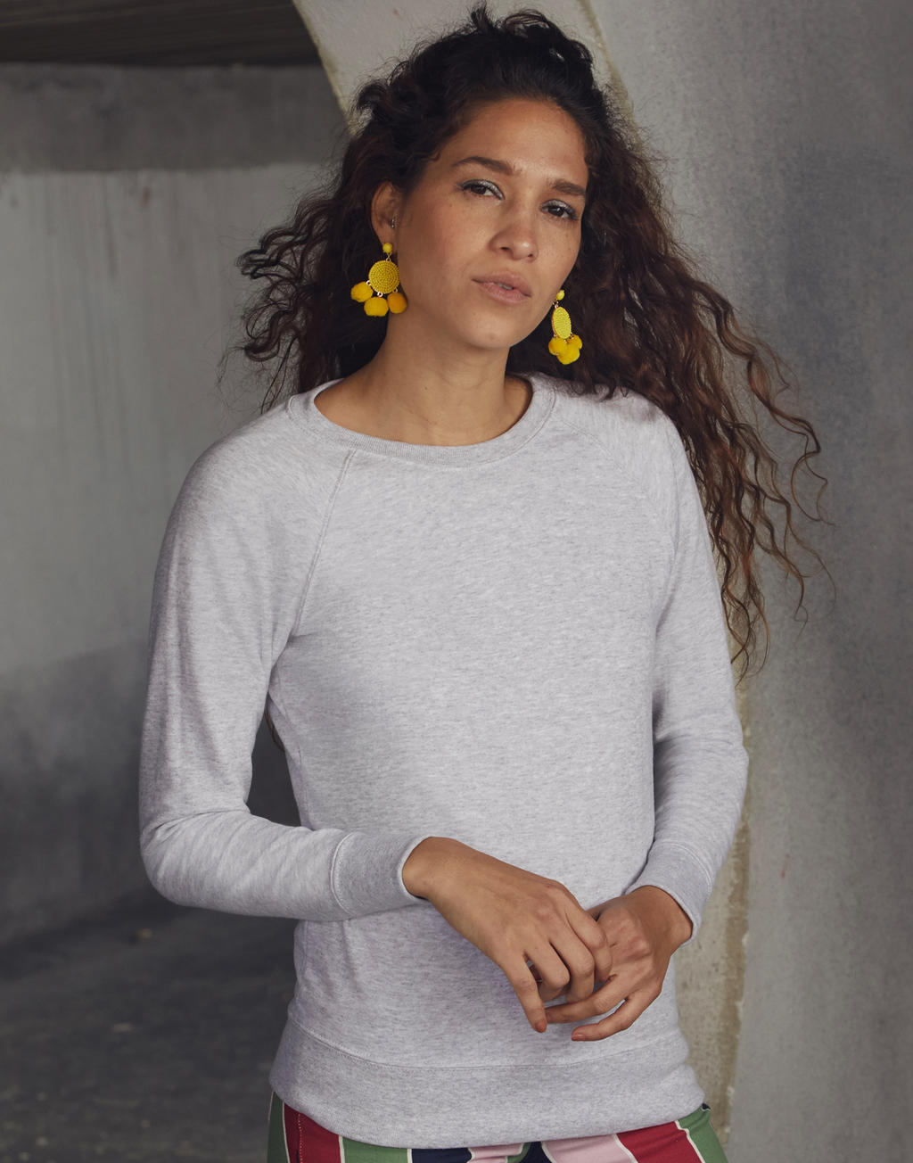 Περιγραφή: 240 g / m², 80% βαμβάκι, 20% πολυεστέρας, Ελαφρύ fleece, Μανίκια Raglan, Λαιμόκοψη, μέση και μανσέτες από βαμβάκι / Lycra rib, Διαμορφωμένες πλευρικές ραφές για γυναικεία εφαρμογή