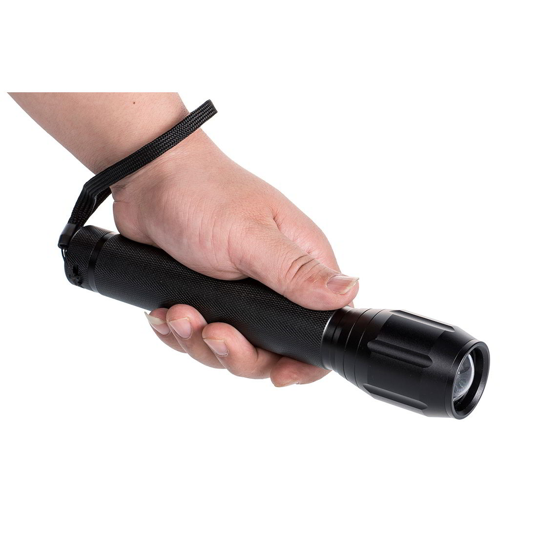 Εξαιρετικά αποτελεσματικό και -πολύ λειτουργικό χειρός φακό με zoom έλεγχο. Το ανθεκτικό σπίτι αλουμίνιο παρέχει εξαιρετική αντοχή στην κρούση και η υφή φινίρισμα εξασφαλίζει μια αξιόπιστη πρόσφυση. Καρπού λουράκι περιλαμβάνονται.