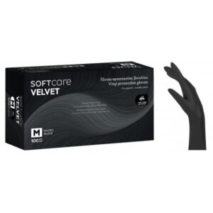 Γάντια Βινυλίου Soft Care Velvet χωρίς πούδρα-Μαύρο